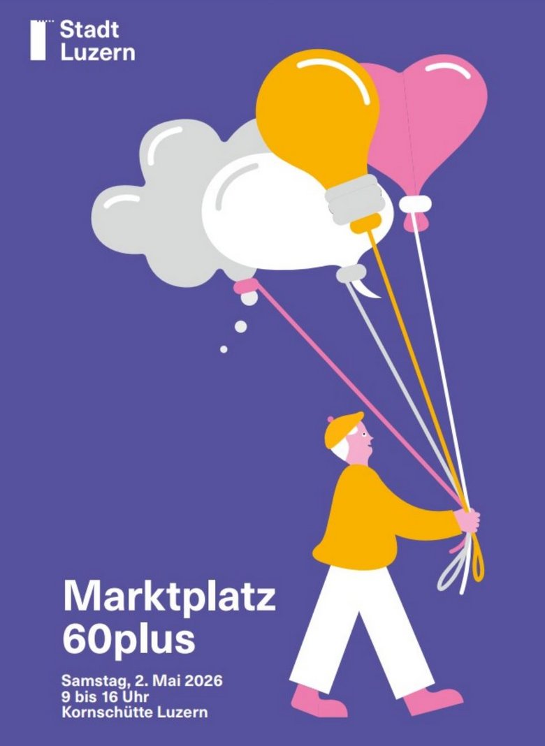 Der Markplatz 60plus versteht sich als Plattform für das Engagement der älteren Bevölkerung Luzerns. Rund 30 Institutionen zeigen an ihren Marktständen, wo Freiwilligenarbeit gefragt ist. Umrahmt wird die Veranstaltung von einer Reihe von Gesprächen auf dem Podium. Der Eintritt ist frei.